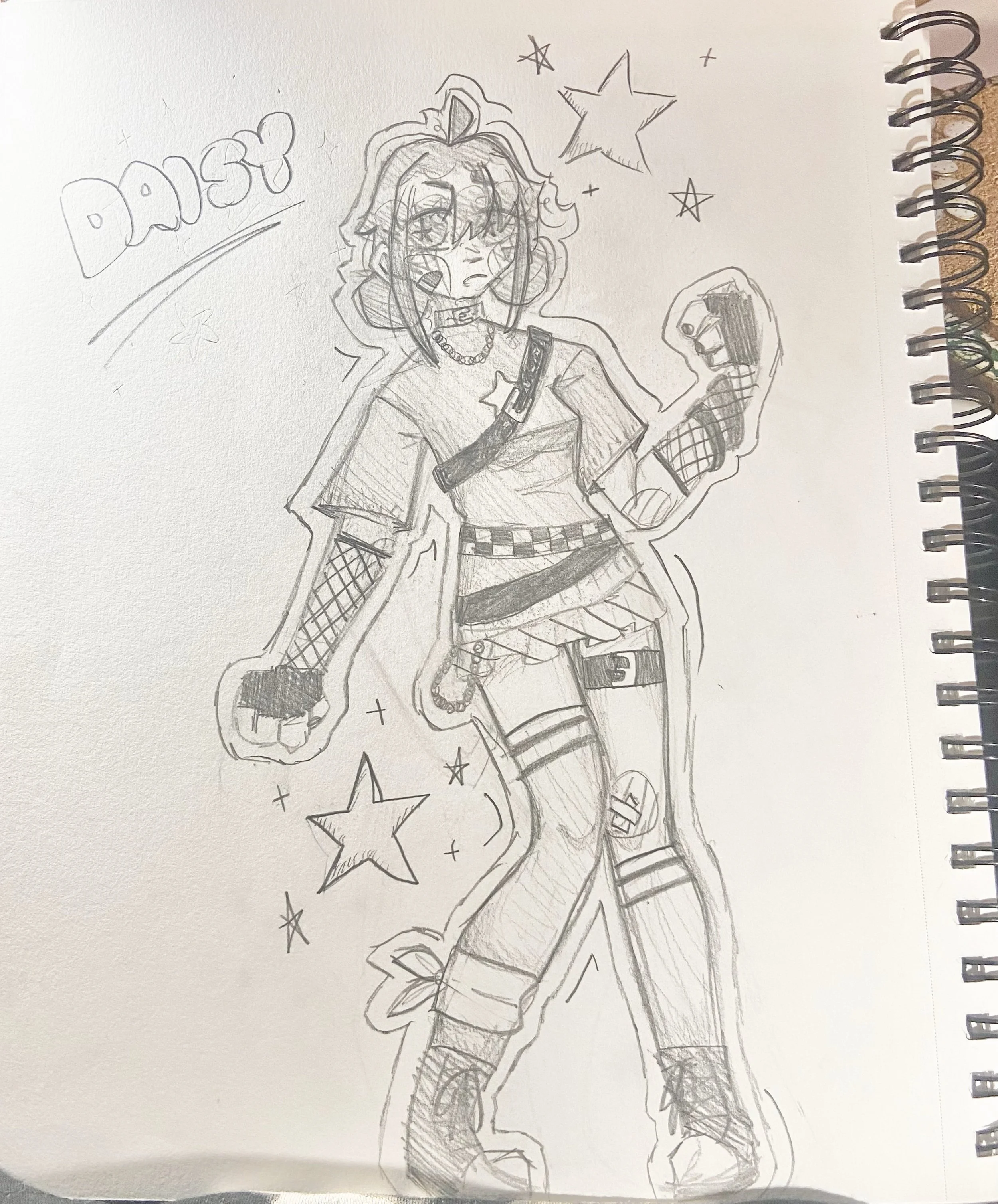 This is a sketch Elsa made when we were first brainstorming how we wanted to portray Tanzy.